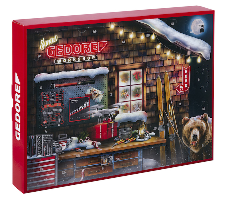 In diesem Jahr bringen Santas kleine Helferlein in Drohnengestalt die Geschenke direkt aus der Weihnachts-Werkstatt unter den Christbaum – zumindest, wenn es nach Gedore red geht: Der neue Adventskalender 2025 macht mit seinem festlichen „Santa’s Gedore Workshop“-Cover Lust auf die Feiertage. Hinter 24 Türchen offenbart der Kalender dann ein sorgfältig zusammengestelltes Bit-Schraubendreher-Set im robusten Aufbewahrungskoffer.