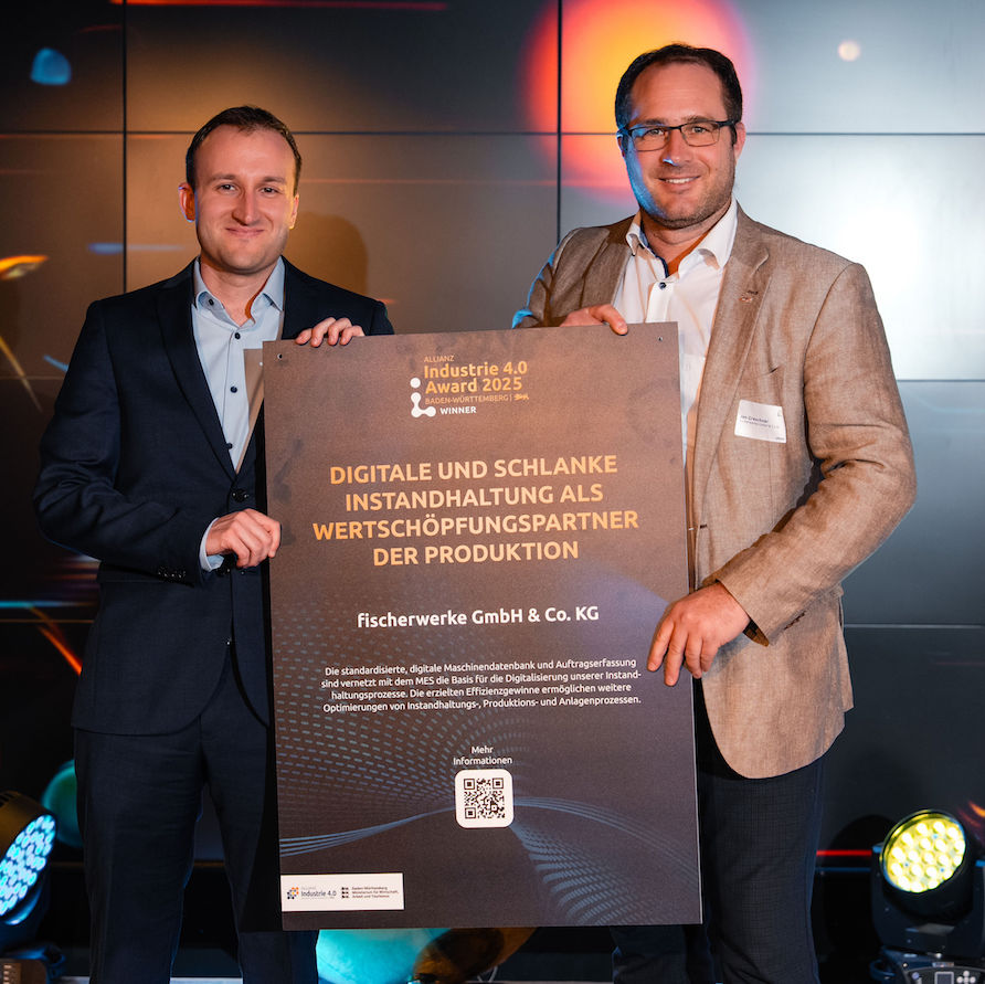 Bereits vergangenes Jahr wurde ein Projekt der Unternehmensgruppe Fischer mit dem „Allianz Industrie 4.0 Award“ in der Kategorie Winner ausgezeichnet. Die diesjährige Preisverleihung fand am 5. November während der Veranstaltung „STARTUP THE FUTURE“ im SpardaWelt Eventcenter in Stuttgart statt. In diesem Rahmen wurde auch das zehnjährige Bestehen der Allianz Industrie 4.0 Baden-Württemberg gefeiert. Dahinter verbirgt sich ein vom Ministerium für Wirtschaft, Arbeit und Tourismus Baden-Württemberg initiiertes und gefördertes Netzwerk. Die Koordinierungsstelle ist beim VDMA e.V. Baden-Württemberg angesiedelt. In dessen Auftrag bewertete ein Expertengremium des Fraunhofer IPA die eingereichten Projekte.